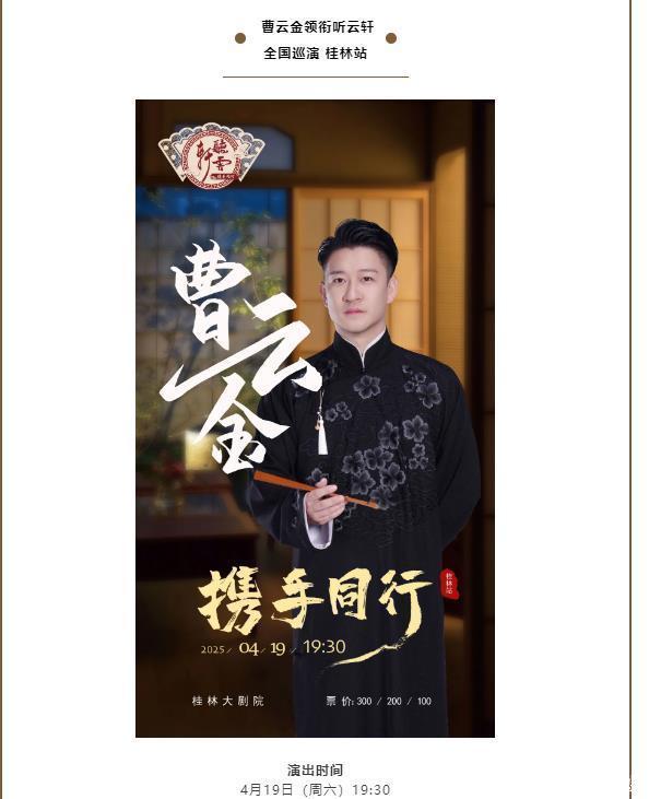 市场与社会的双重认可,是检验艺术价值的试金石。河南文旅为其定制大巴车身广告, 新乡、郑州专场演出与城市文旅宣传深度绑定,曹云金用个人影响力为家乡引流,这种"艺术+文旅"的双赢模式,彰显了他的社会号召力。从徐州到沧州,多地相继邀请他担任文旅大使,直播间里随口推荐当地美食文化,线下演出带动城市关注度,这种与民生需求的紧密连接,正是艺术扎根大众的生动体现。 更值得关注的是,他的听云轩已在北京、天津等多地开设分店,年营收破千万,其创新模式还带动了高兴社等同行效仿,真正践行了"携手同行"的行业担当。